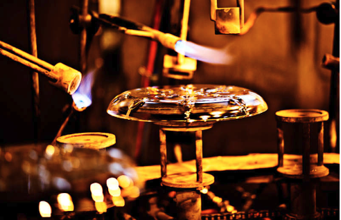 Lead crystal is characterized by a high refractive index of light, which is manifested by substantial brilliance and the decomposition of light rays into a color spectrum. We are proud to have the highest ratio of lead of all Czech countries. Our crystal glass contains at least 24% of it. The basic material for lead crystal production is glass-making silica sand. So called batch contains not only sand, but also other raw-materials, which are weighed out in fixed rate according to the technological order, and thoroughly mixed. They include mainly potassium carbonate (potash), sodium carbonate (calcined soda ash), potassium nitrate (saltpetre) and other substances, e.g. refining agents.